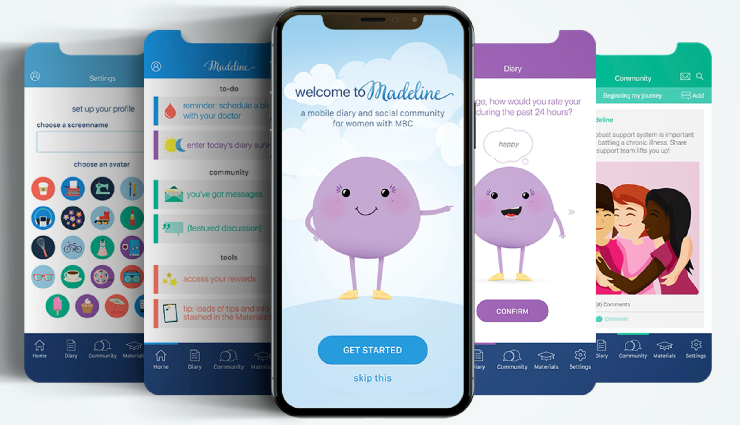 Madeline (a mobile app diary of everyday life and experiences) is more than just an app. It tracks and reports medication adherence, exercise, and impacts to mood and pain level/location in real time. An additional component of the app is a custom community - where patients can share their experiences and get support from others. This shared connection among all patients in the community supports learning, understanding, and adherence.