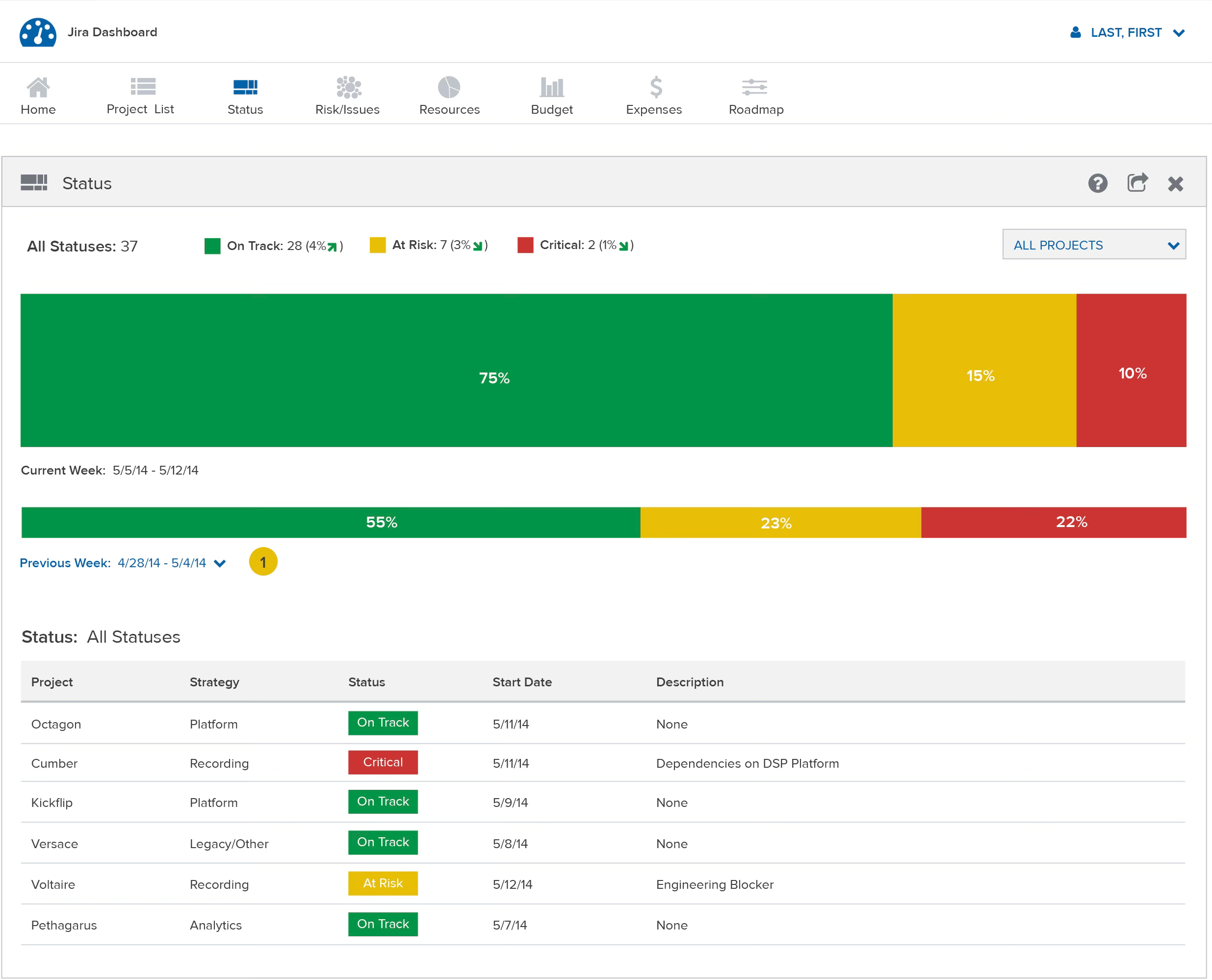 Jira (a project management tool) manages soley on a per project basis, with everything being seperate. But what happens when you have an organization with 30-40 project streams going on concurrently? Do you have to individual view each project and remember everything at a glance? Is there no way for comparison utilizing all the data that was being logged on a daily basis?